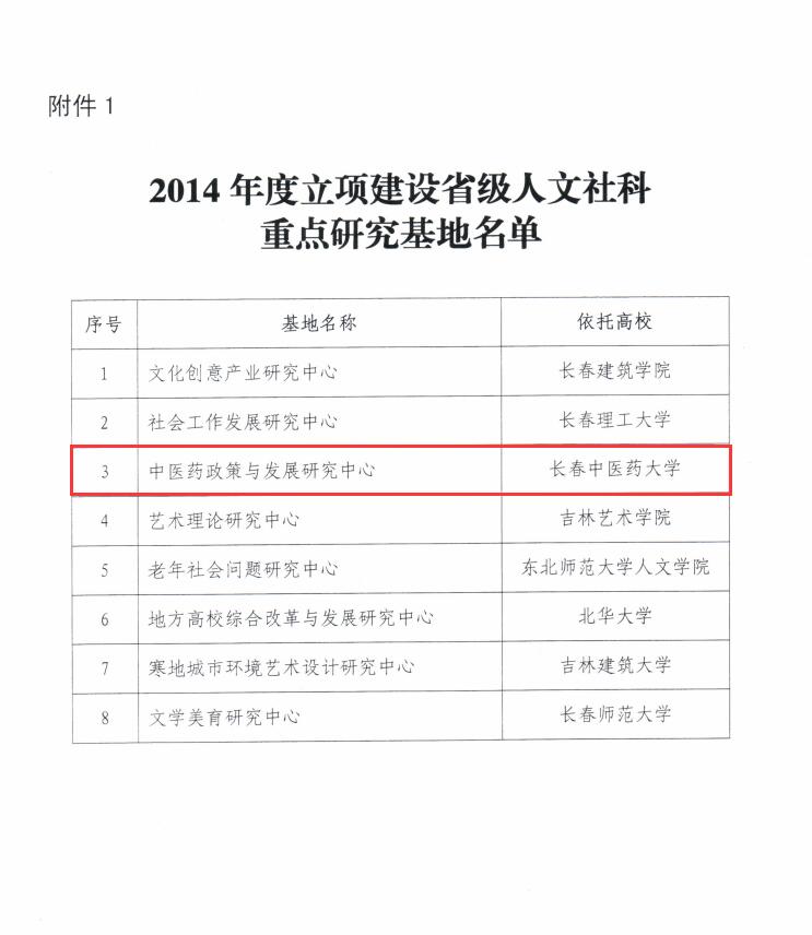 中医药政策与发展研究中心,基地负责人王之虹教授系国家973课题首席科学家,专门从事中医药发展战略、中医药政策、法规及中医药文化研究。研究中心协助起草吉林省中医药事业“十二五”、“十三五”发展规划,参与起草《中医药法(草拟稿)》《吉林省人民政府关于加快推进全省中医药发展的意见》等多项吉林省发展中医药的规划、政策和制度。目前研究中心已承担国家及省级相关课题近百项。包括中医立法、健康产业、医改等课题,多项研究成果被政府采纳,并先后获得中华中医药学会政策研究奖、国家中医药管理局专项研究工作特殊贡献奖等奖励。中心充分发挥高校服务社会的职能,积极开展中医药促进健康宣传教育活动,先后与省政府、省老干办、清华大学、电视台开展合作,传播中医药文化,取得较大社会效益。