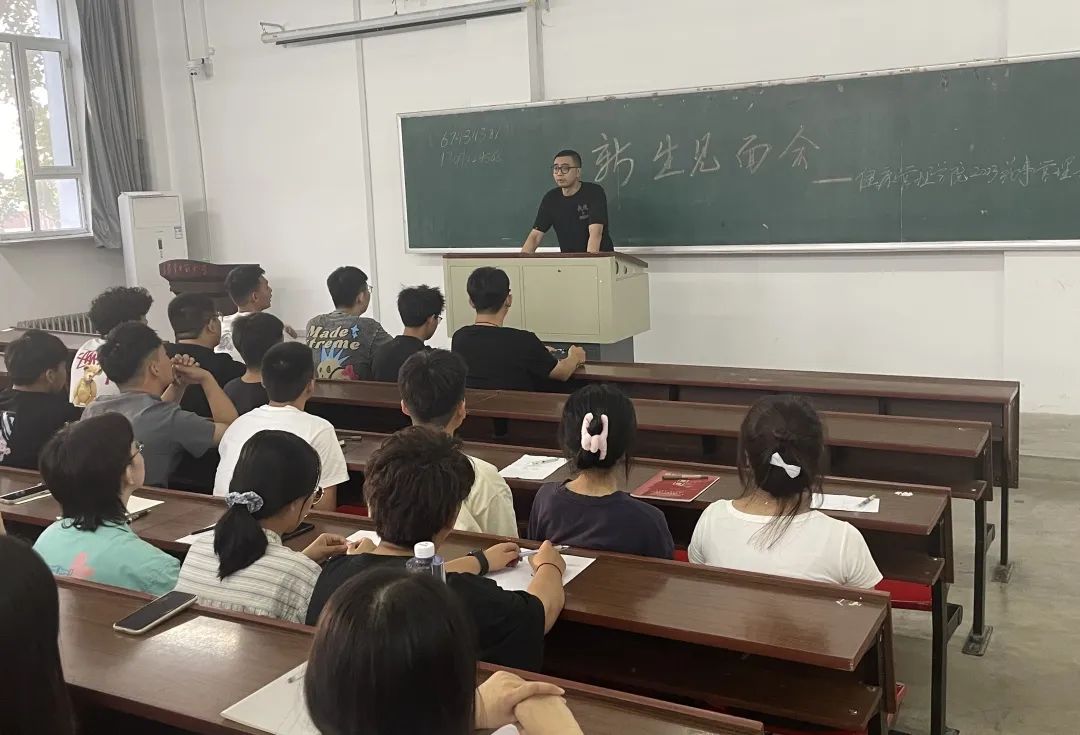 于致知楼1420教室召开新生见面会。新生辅导员刘海昭,冯彦博分别向新生介绍学校及学院的基本情况、开展新生入学思想教育,引导新生尽快实现角色的转变,并收集学生的意见与想法,同时在班集体建设,班风学风等方面做了重点强调,给各位新同学未来的大学生活拉开了一个完美序幕。