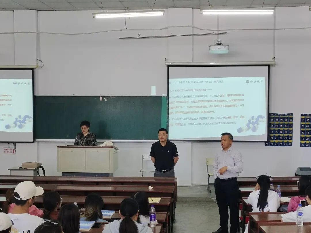 王中喜书记、越皓院长首先来到了教学楼第四教室与学生进行亲切交流,针对就业、考研等问题作了详尽的讲解,勉励同学们要珍惜大学时光,认真学习,保持身心健康,充实丰富自我。随后在阶梯四教室听取了修正集团程杰老师所讲授的《医药商品购销员》,课堂气氛活跃,师生互动频繁,课堂纪律有序。最后。王中喜书记、越皓院长对寝室、食堂进行了实地走访,并嘱咐辅导员关注学生思想动态,及时了解学生诉求,解决学生合理要求。