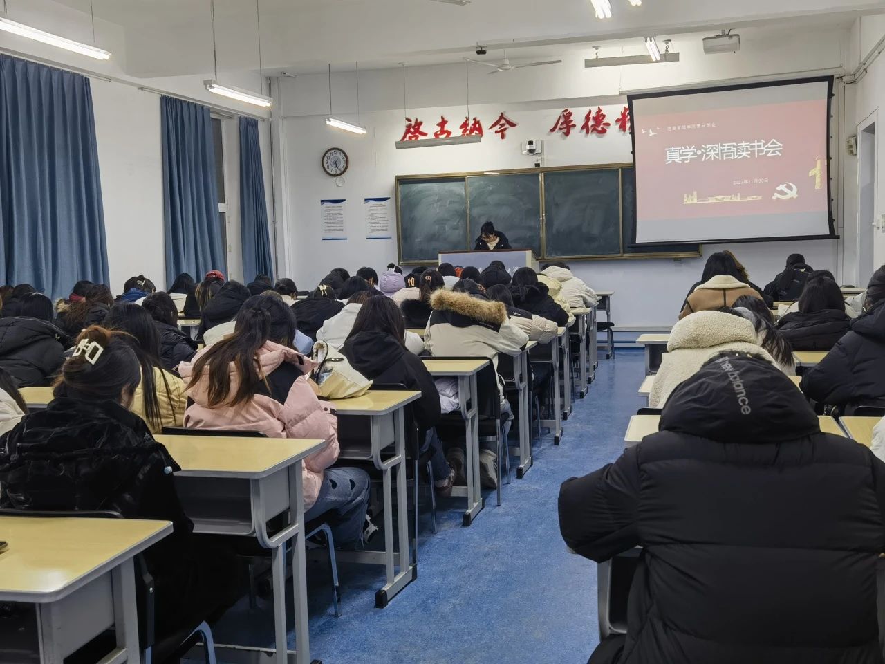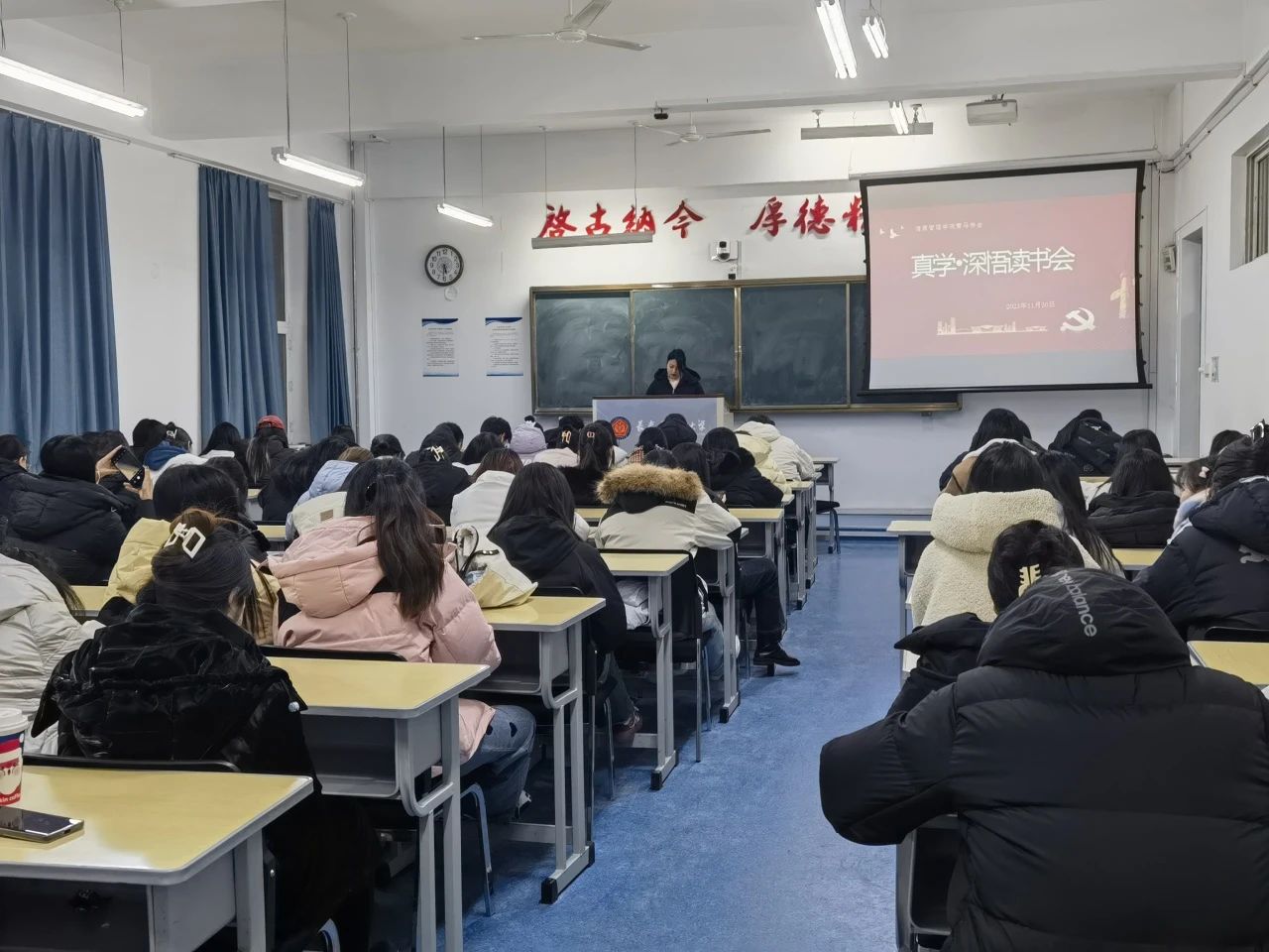 青马学员在致知楼1101开展例行读书会。此次青马学员共读一本书----《中国人,你要有自信》。