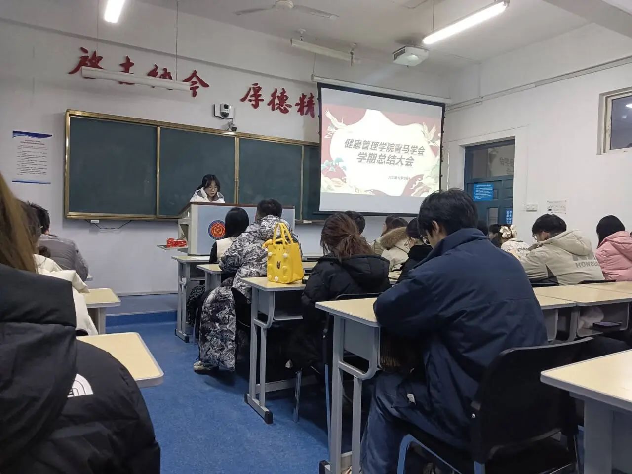 祖思妍同学对本学期各项活动的开展情况以及取得的良好成果进行汇报,希望青马学员们在下一学年再接再厉,保证青马学会各项工作的平稳运行。