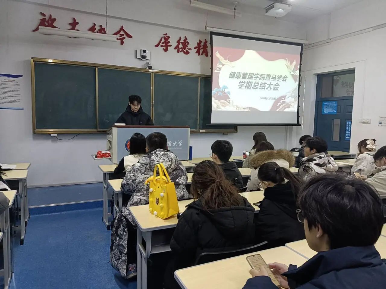 最后,刘海昭老师对本学期青马学会的工作进行总结:鼓励同学们要相互进行深入的交流,分享经验感悟,互相学习成长,从而对自己形成清醒客观的认识。期望青马学员们能以饱满的精神状态投入到期末考试复习中,取得优异的成绩!