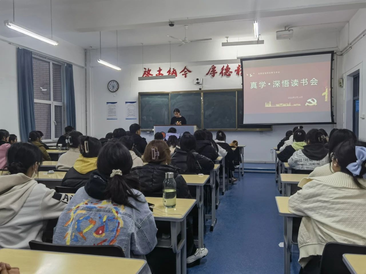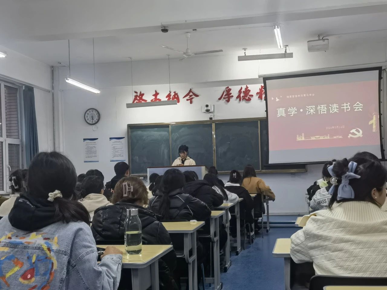 青马学会在致知楼1101教室开展读书会。此次青马学员同读一本书——《我们为什么看好中国》。读书会期间,刘海昭老师到场参与活动并对新学期青马学会工作进行部署,鼓励青马学员积极参与活动,相互学习成长,以热情饱满的精神状态投入到新学期的学习之中。